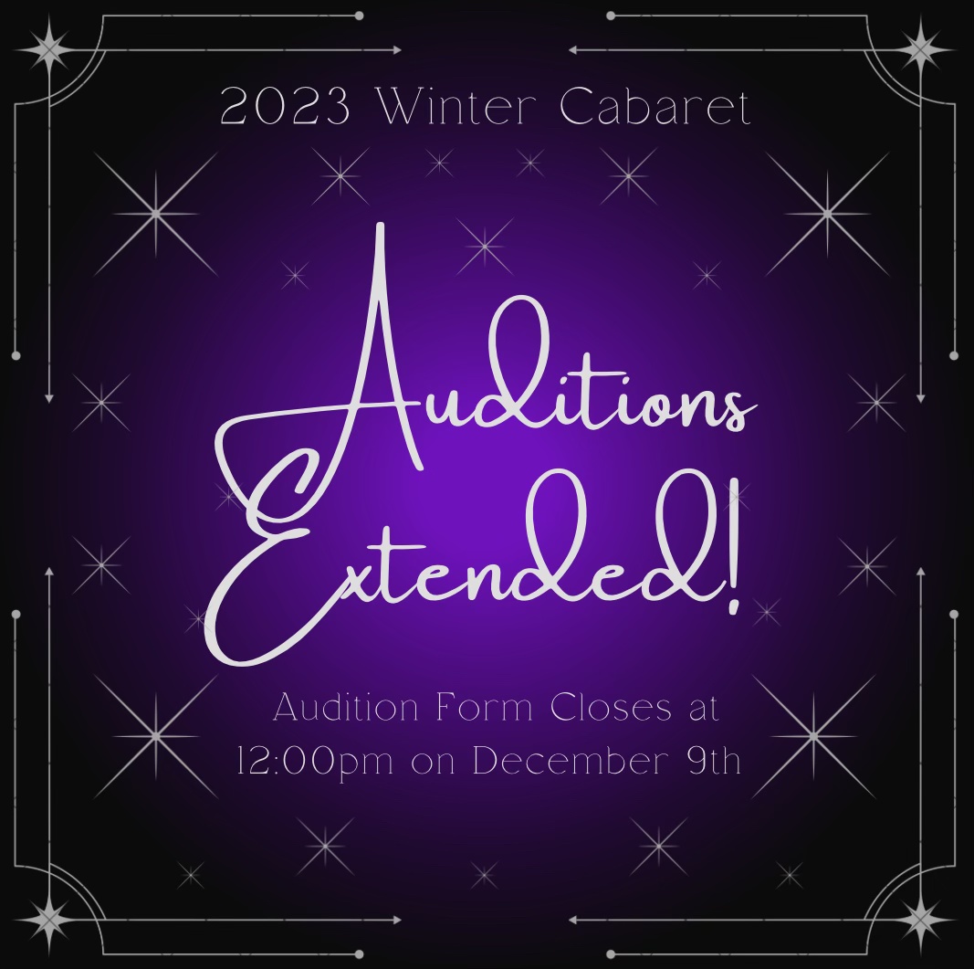 Auditions for our 2023 Winter Cabaret have been extended until December 9th at 12:00pm!