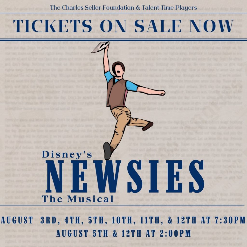 Tickets are on sale now for Newsies! On June 19, 2023October 2, 2023 By The Charles Seller FoundationIn 2022-2023 To purchase tickets, click this link or the image below! Share this: Click to share on X (Opens in new window) X Click to share on Facebook (Opens in new window) Facebook Click to email a link to a friend (Opens in new window) Email Click to print (Opens in new window) Print Like Loading... Related