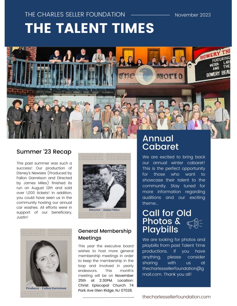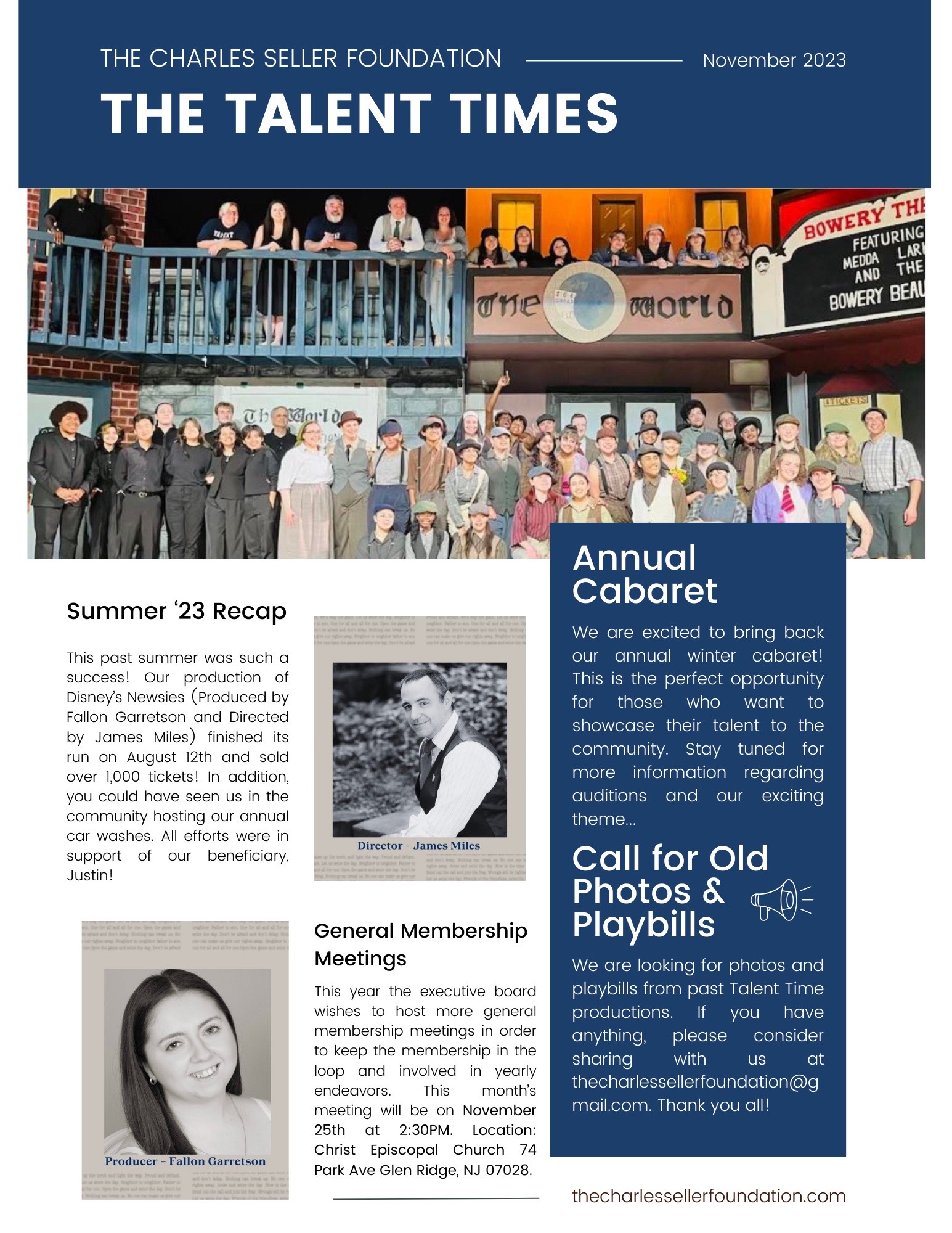 Caitlin Miller is a graduate of Caldwell University and is currently an elementary special education teacher. She has been a part of the Charles Seller Foundation for the last few years, first helping with costumes for Seussical, then joining the production team and cast of Newsies this past year. Caitlin has a passion for theater, dance and helping those in her community which is exactly what the Charles Seller Foundation is all about. She’s looking forward to being the Treasurer for the foundation and is excited for the year to come!