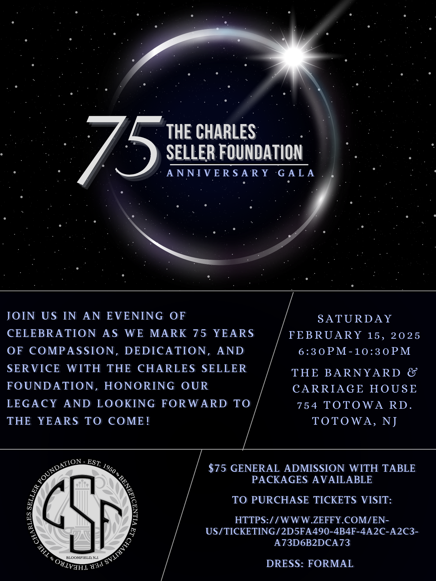 The Charles Seller Foundation is proud to announce our 75th anniversary gala! We invite all current members, alumni, and patrons to join us in an evening of celebration as we mark 75 years of compassion, dedication, and service with the Charles Seller Foundation, honoring our legacy and looking forward to the years to come!
