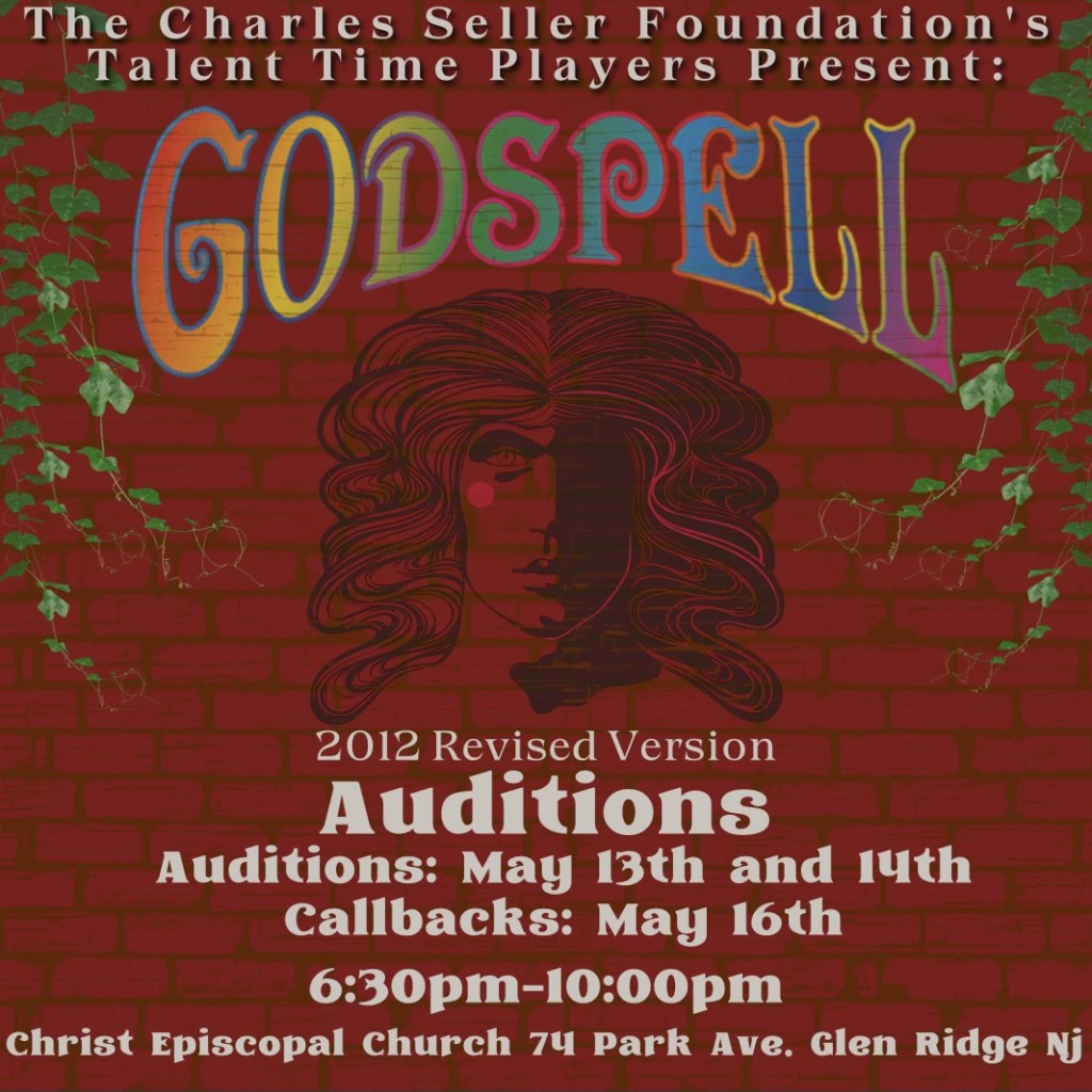 Auditions for The Charles Seller Foundation and Talent Time Player’s production of Godspell will be held May 13th and May 14th from 6:30pm-10:00pm